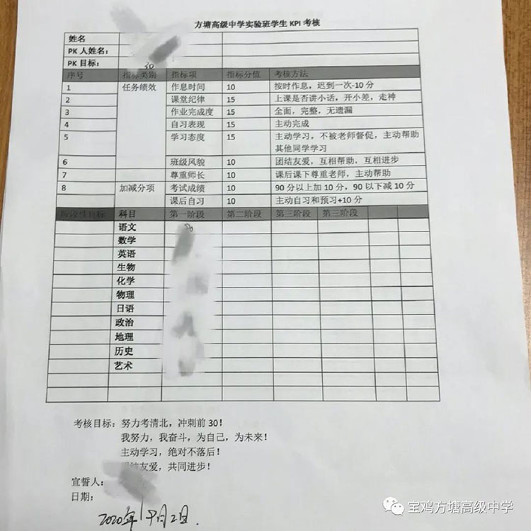 (下图为学生填写的KPI考核图)