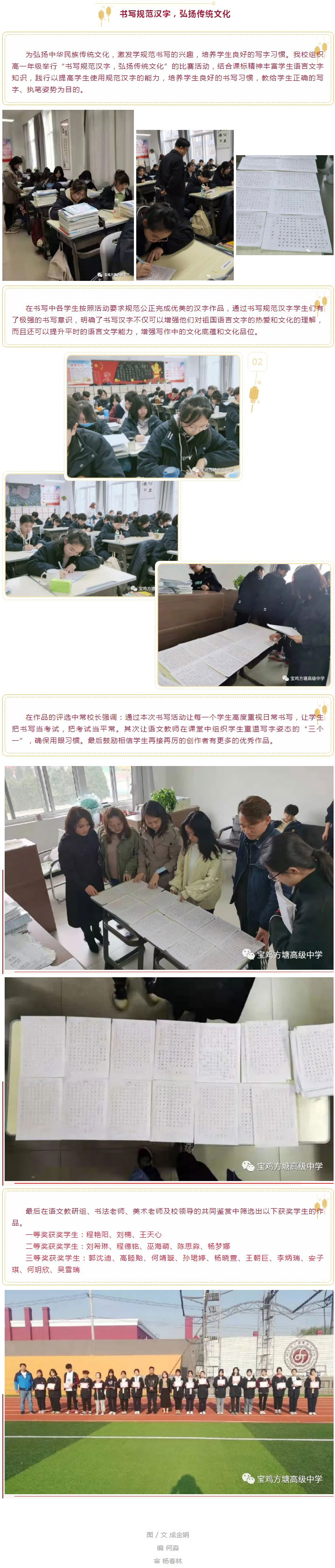 【宝鸡方塘高级中学 】书写规范汉字,弘扬传统文化