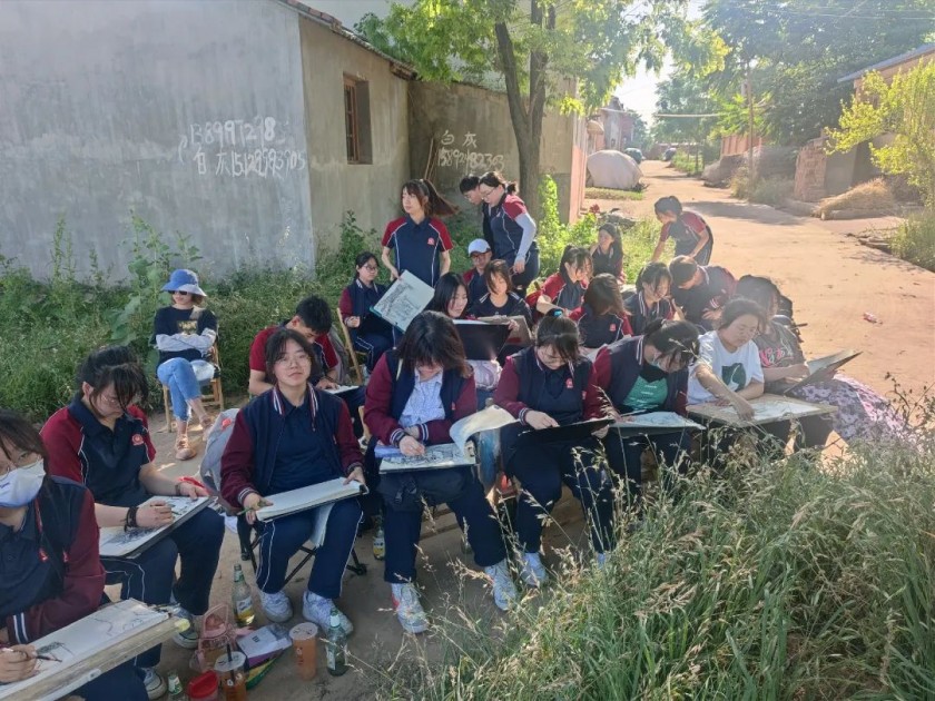 燕语鸠鸣、蜂蝶带香、高柳新蝉、绿树成荫的初夏让人沉迷,正是走出教室,拥抱自然,感受真实的好时机。2022年6月1日,宝鸡方塘高级中学2020级全体美术生在副校长杨春林及美术组全体教师的带领下,前往蟠龙新区东豪村外出写生。