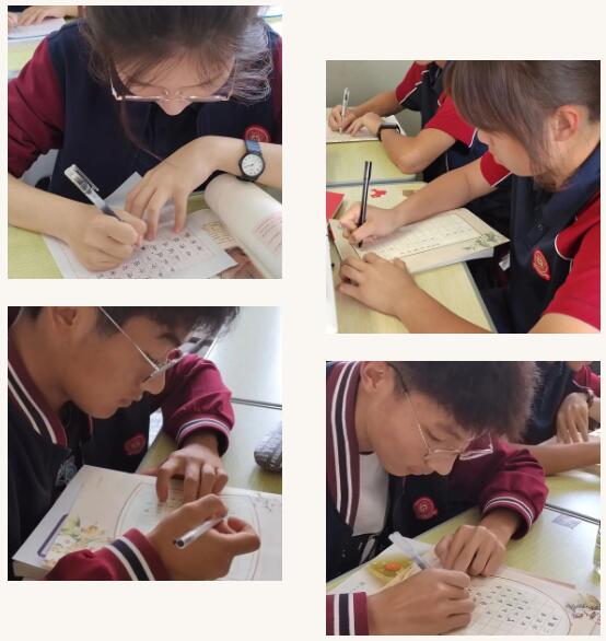 活动中学生们一笔一划,书写作品。
