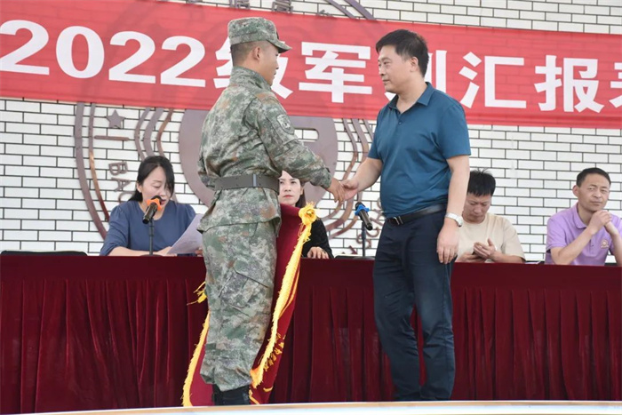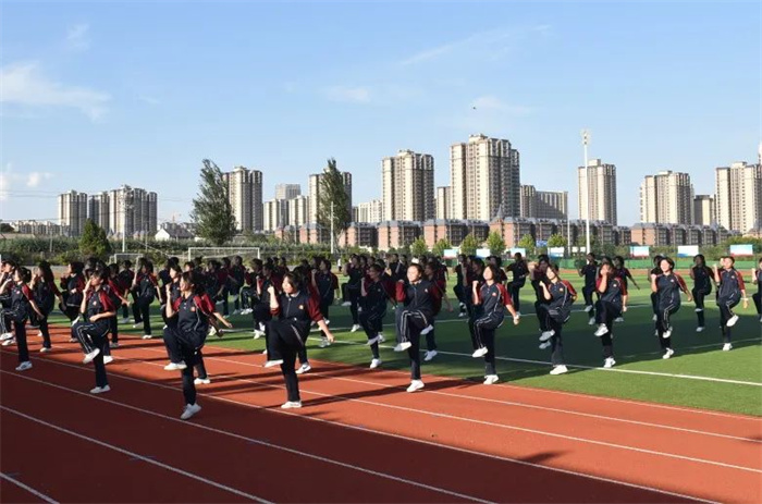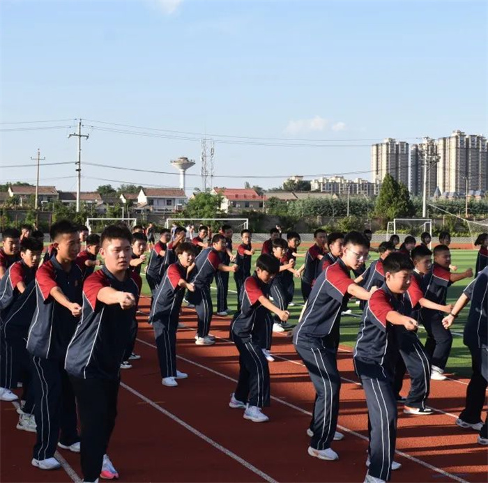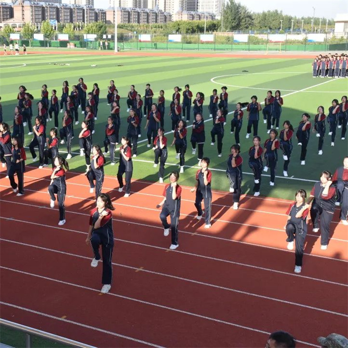 为弘扬爱国主义精神和革命英雄主义精神,普及国防知识,提升高一新生的国防意识和国家安全意识,我校为期一周的新生军事训练,在学校、年级的周密安排和全体教官的努力下,圆满结束。2022年9月6日下午在学校操场举行军训汇报表演。我校理事长杨慧艳女士、苏满乾校长、杨春林副校长等校级领导、军训总指挥寄浩辰教官与高一年级主任成金娟老师参加了本次汇演。