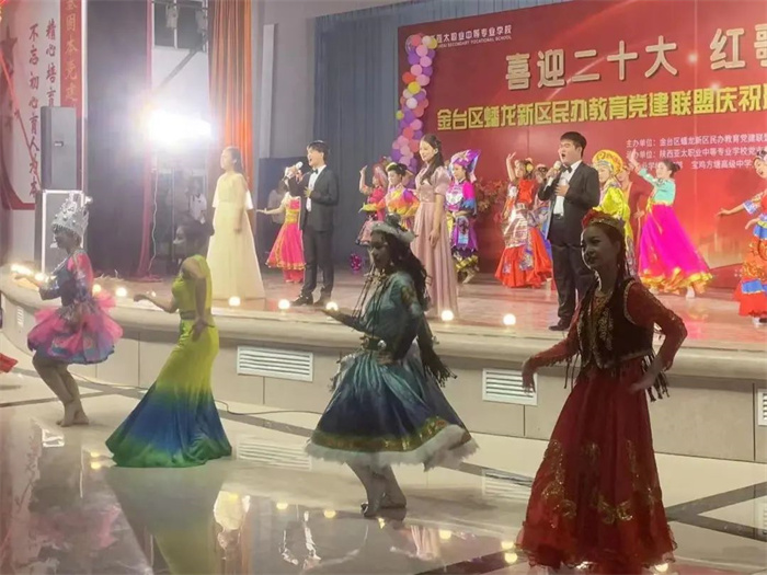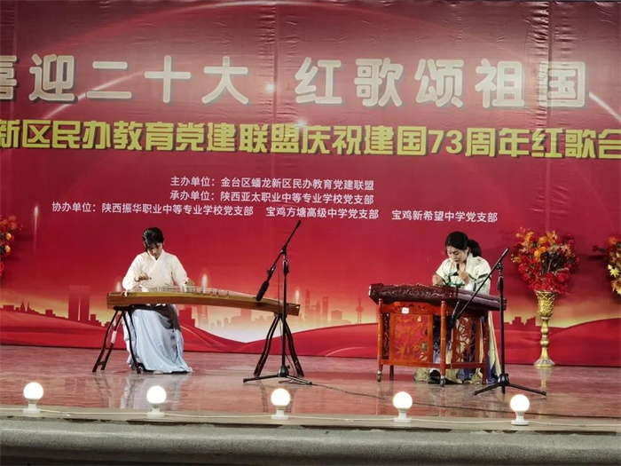 盛世盛会,同心同行。近日,金台区蟠龙新区民办教育党建联盟在亚太学校多功能厅举行“喜迎二十大·红歌颂祖国”合唱比赛。我校党员教师与五十余名学生积极参与了本次活动.