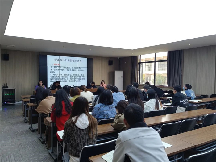 为了进一步推进我校新课程改革的有效实施,提升我校教师对新教材的理解水平,促进教学质量的不断提升,高一年级组10月14日举行了“新课程新教材”专题培训活动。年级主任成金娟根据陕西省高考综合改革资料汇编,结合我校学生的实际情况,从新常规、新课堂、新教研三个方面明确要求,我们教师应站在准确把握改革政策走向和主要教学内容上。注重教师对人才培养、课堂教学等内容的细节化。