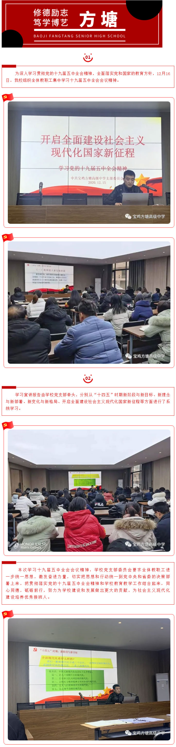 【宝鸡方塘高级中学】我校组织全体教职工学习十九届五中全会会议精神