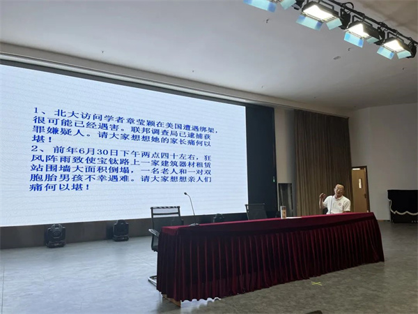 苏校长在专题中以“章莹颖绑架案”以及社会上多起坠楼、溺水事件为例,告诫高一同学要重视自我人身安全、提高安全意识: