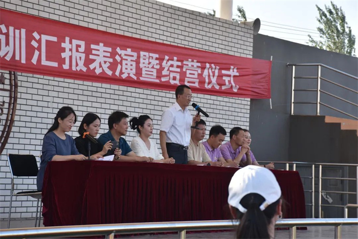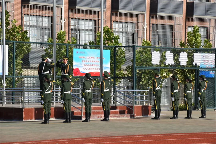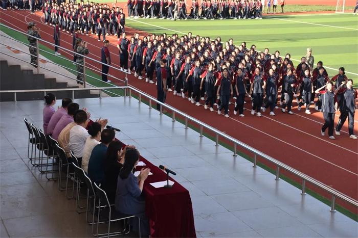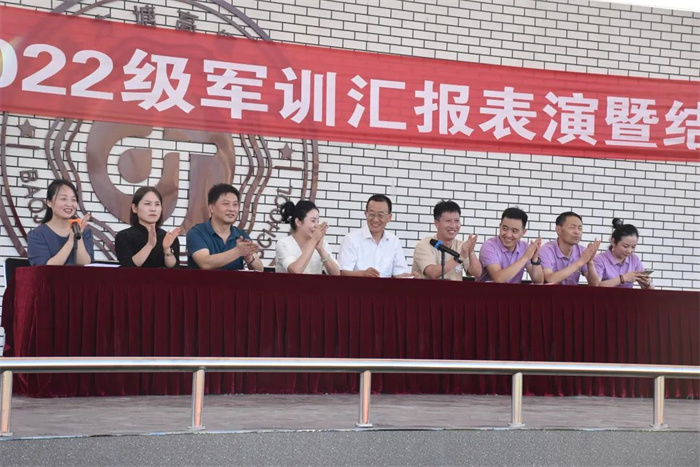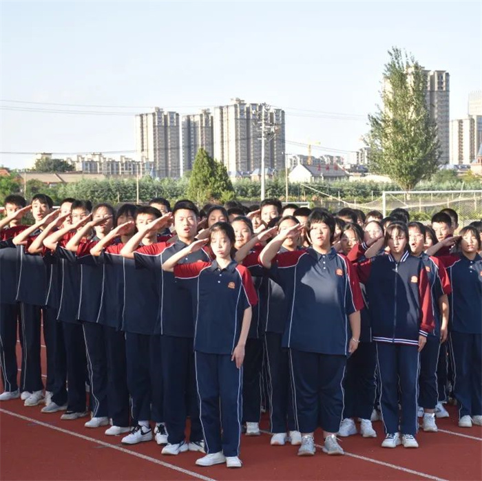 为弘扬爱国主义精神和革命英雄主义精神,普及国防知识,提升高一新生的国防意识和国家安全意识,我校为期一周的新生军事训练,在学校、年级的周密安排和全体教官的努力下,圆满结束。2022年9月6日下午在学校操场举行军训汇报表演。我校理事长杨慧艳女士、苏满乾校长、杨春林副校长等校级领导、军训总指挥寄浩辰教官与高一年级主任成金娟老师参加了本次汇演。
