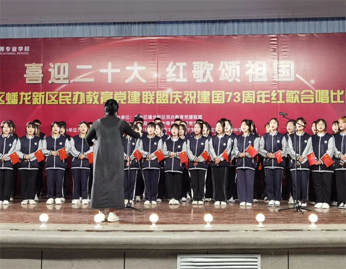 盛世盛会,同心同行。近日,金台区蟠龙新区民办教育党建联盟在亚太学校多功能厅举行“喜迎二十大·红歌颂祖国”合唱比赛。我校党员教师与五十余名学生积极参与了本次活动.