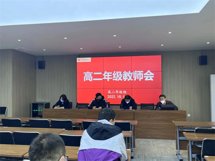 为激励我校全体高二教师凝心聚力,砥砺前行。2022年10月12日中午,我校高二年级组在学校会议室召开了高二年级全体教师大会。副校长杨春林、校长助理李越、教务处主任张志文及高二年级全体教师参加本次会议。会议由高二年级组组长付洋主持。