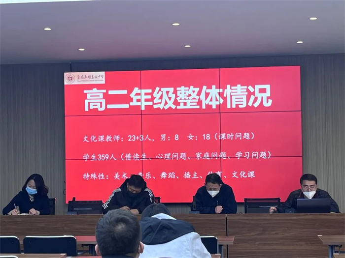 首先,高二年级组组长付洋老师介绍了高二年级整体情况,并针对近期出现的各类问题进行分析,也对以后的工作提出了具体要求。随后,教务处张主任、李越助理及杨校长也立足于我校实际,对高二现阶段工作进行了针对性指导,要求高二全体教师要充分认清形势,承认不足也要增强信心,同时鼓舞全体教师增强使命感、责任感,齐心协力面对接下来的工作。