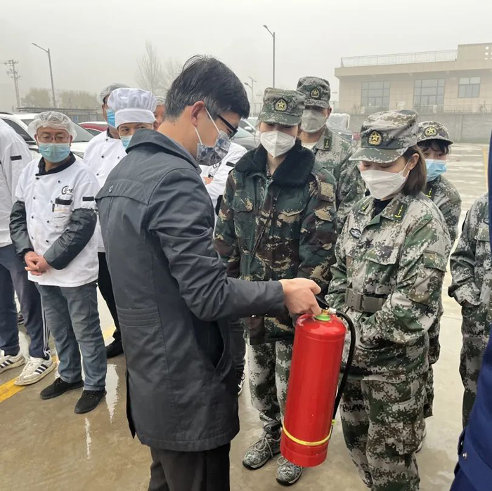 最后,讲师对干粉灭火器、水基灭火器、灭火毯、防毒面罩等消防工具的使用进行了演示操作并指导教职工进行实操训练,还示范强调了正确的逃生方法。